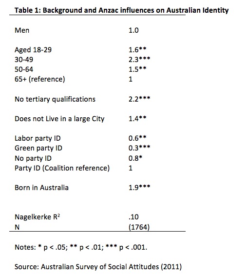 Donoghue, J. and Tranter, B. (2013) ‘The Anzacs: Military influences on Australian Identity’ Journal of Sociology DOI: 10.1177/1440783312473669.